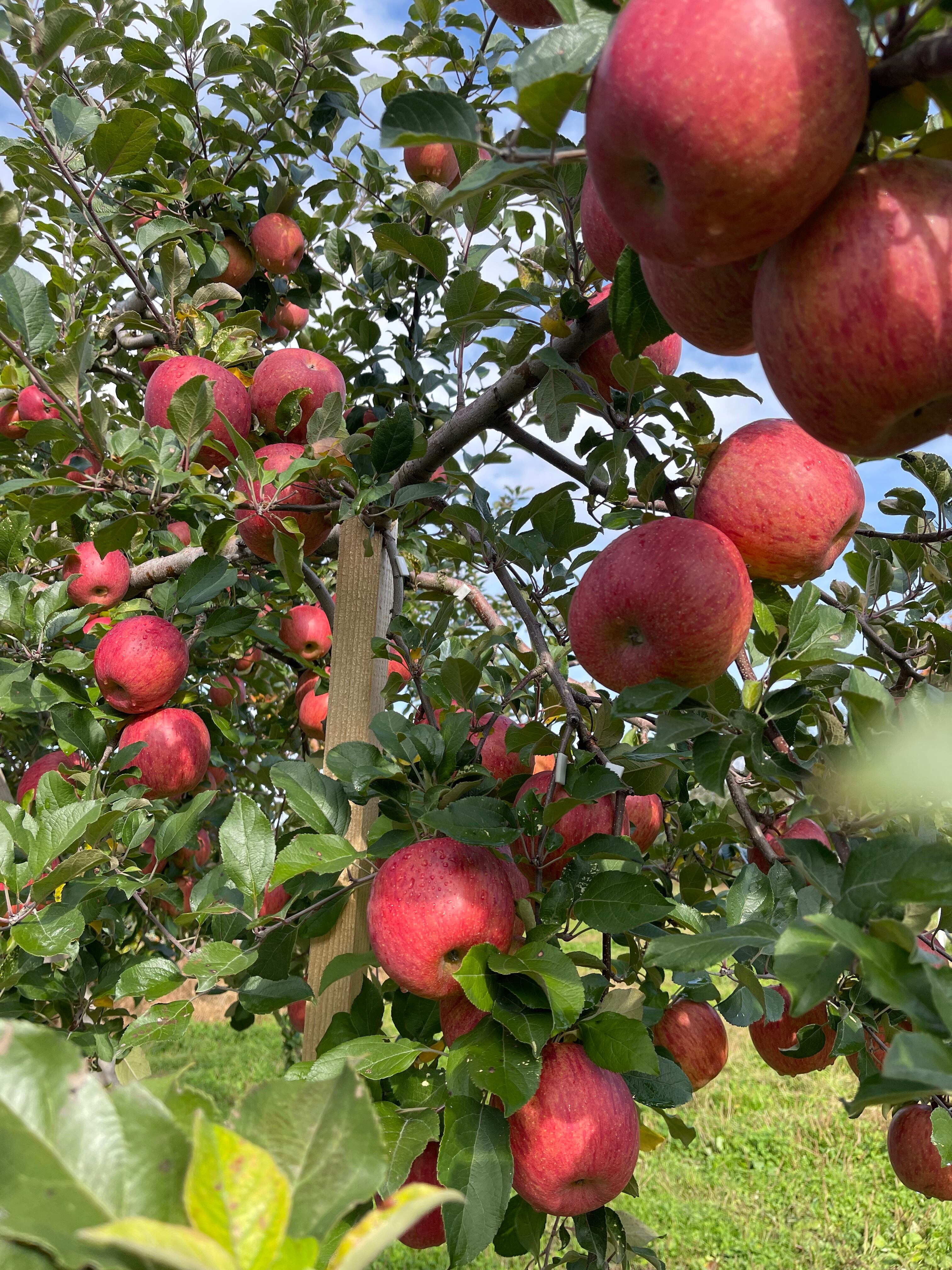 葉を残すことにより、糖度が非常に高くなり、とても甘くてジューシーなりんごになります。